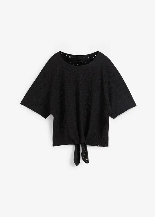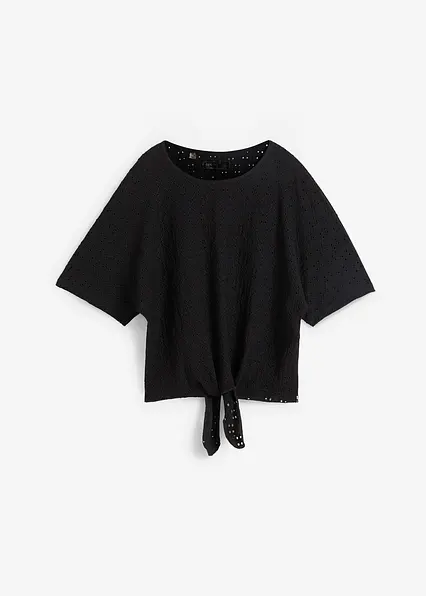 Kurzshirt mit Lochstickerei in schwarz von vorne - bonprix