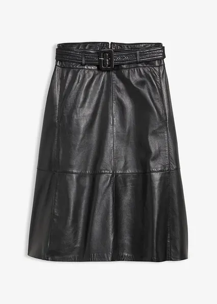eleganter Rock in A-Linie aus Lammnappa mit Gürtel