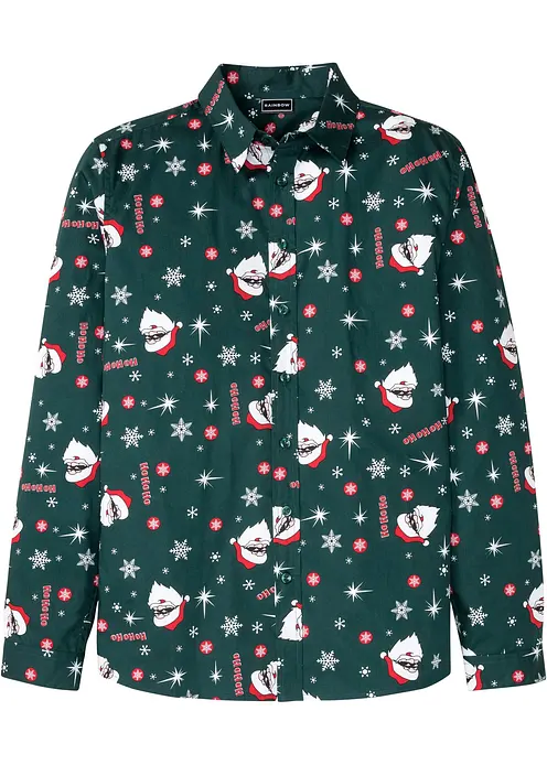 Langarmhemd mit Weihnachts-Druck aus reiner Baumwolle, Slim Fit
