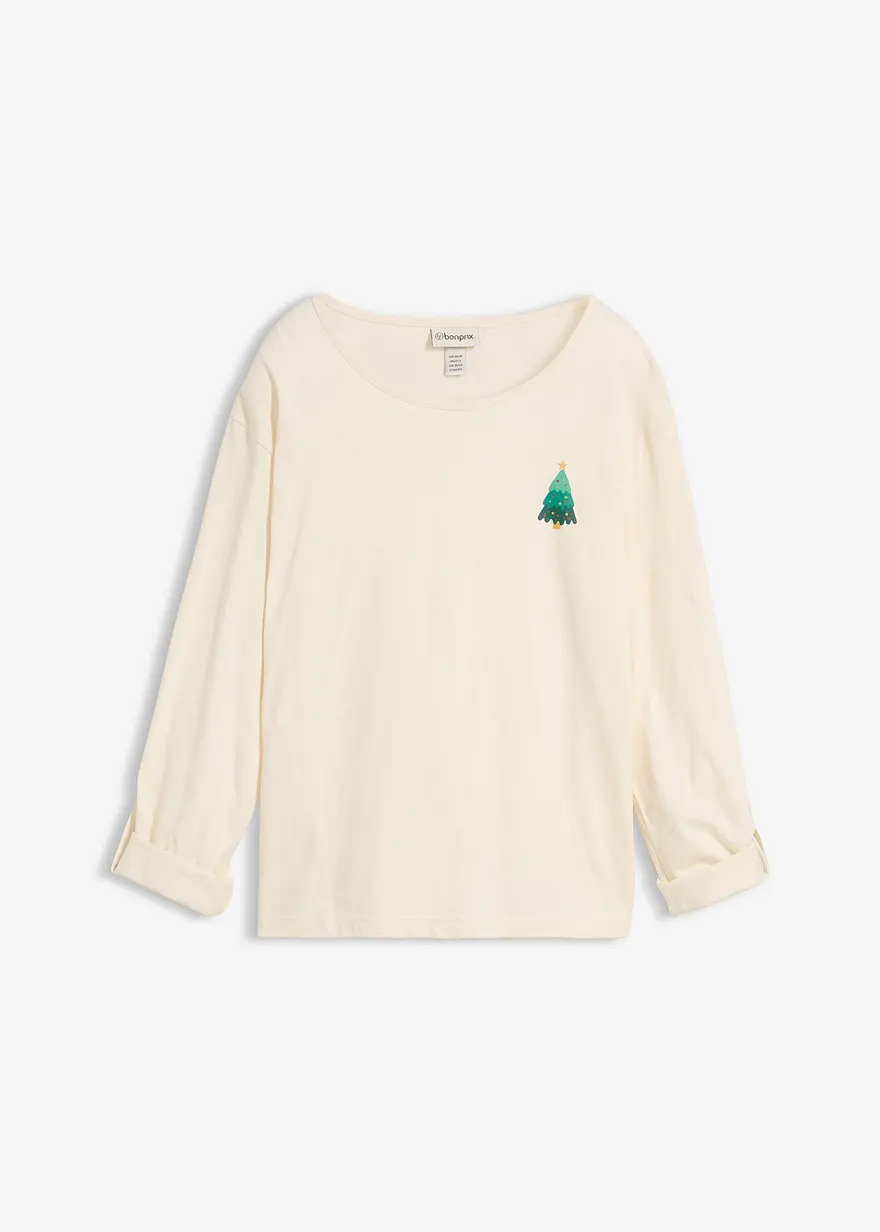 Langarmshirt aus reiner Bio-Baumwolle mit Weihnachtsmotiv