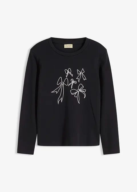 Langarmshirt aus reiner Bio-Baumwolle in schwarz von vorne - bonprix
