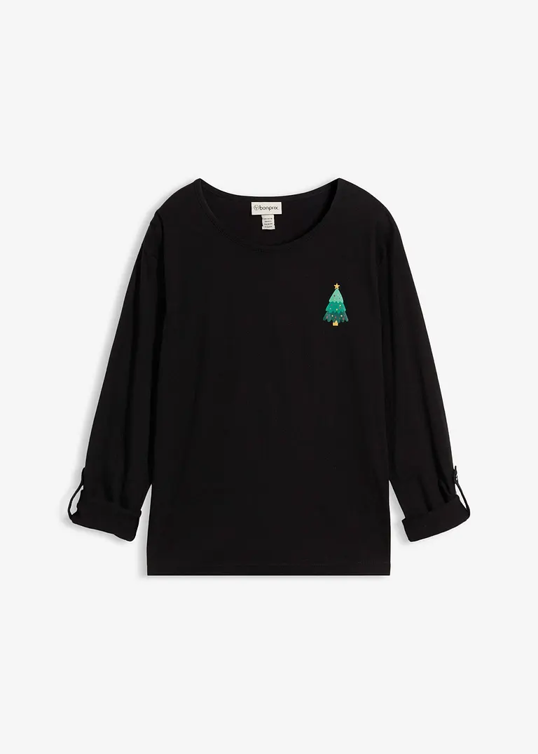 Langarmshirt aus reiner Bio-Baumwolle mit Weihnachtsmotiv