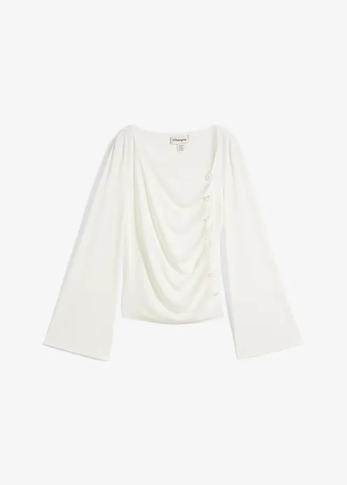 Langarmshirt mit asymmetrischer Knopfleiste vorne und Trompetenärmeln