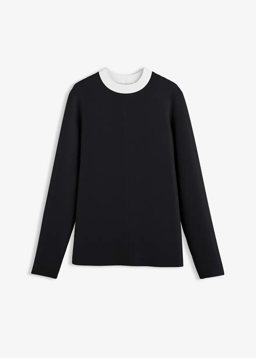 Fließendes Langarmshirt mit Turtleneck in Kontrastfarbe