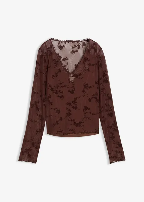 Modisches Langarmshirt mit Flockprint und Spaghettiträger-Top