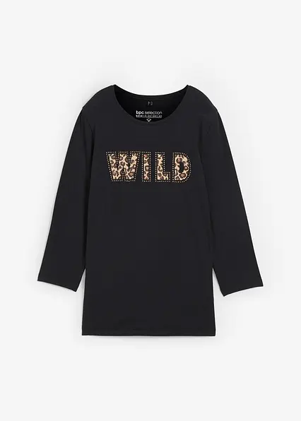 Langarmshirt mit Nieten und Druck in schwarz von vorne (im Anschnitt) - bonprix