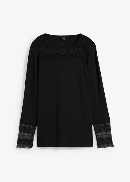 Langarmshirt mit dekorativen Spitzeneinsätzen