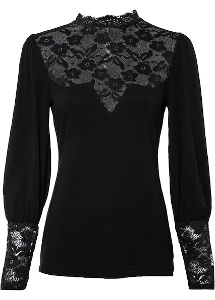 Modisch und verspielt: Shirt bezauberndem Häkel-Einsatz