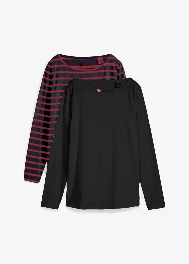 Langarmshirt mit U-Boot-Ausschnitt (2er Pack)