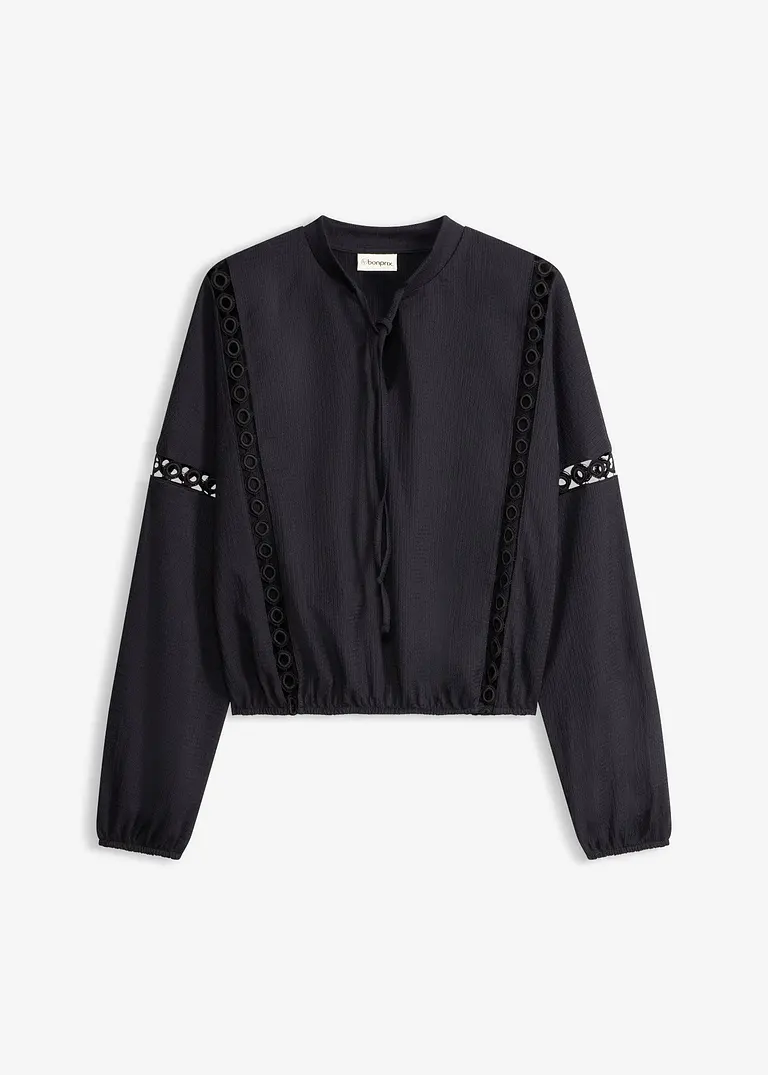 Langarmshirt aus strukturiertem Crêpe