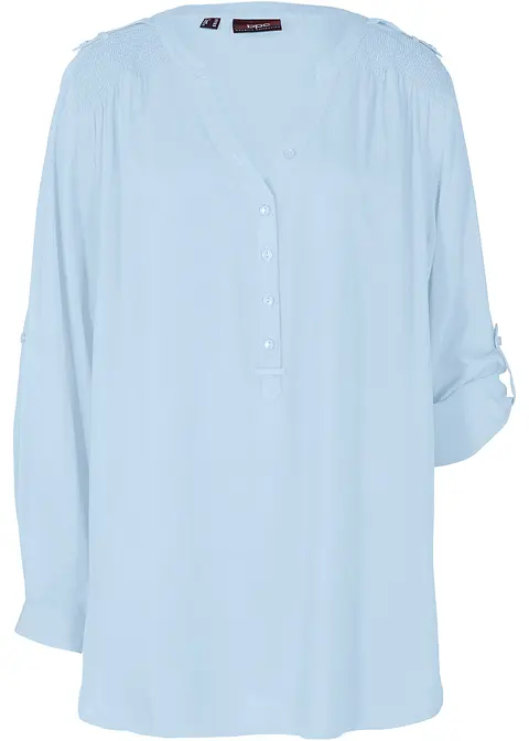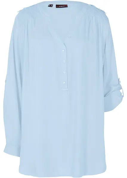 Blusentunika mit langen Ärmeln, Rundsaum und Knopfleiste