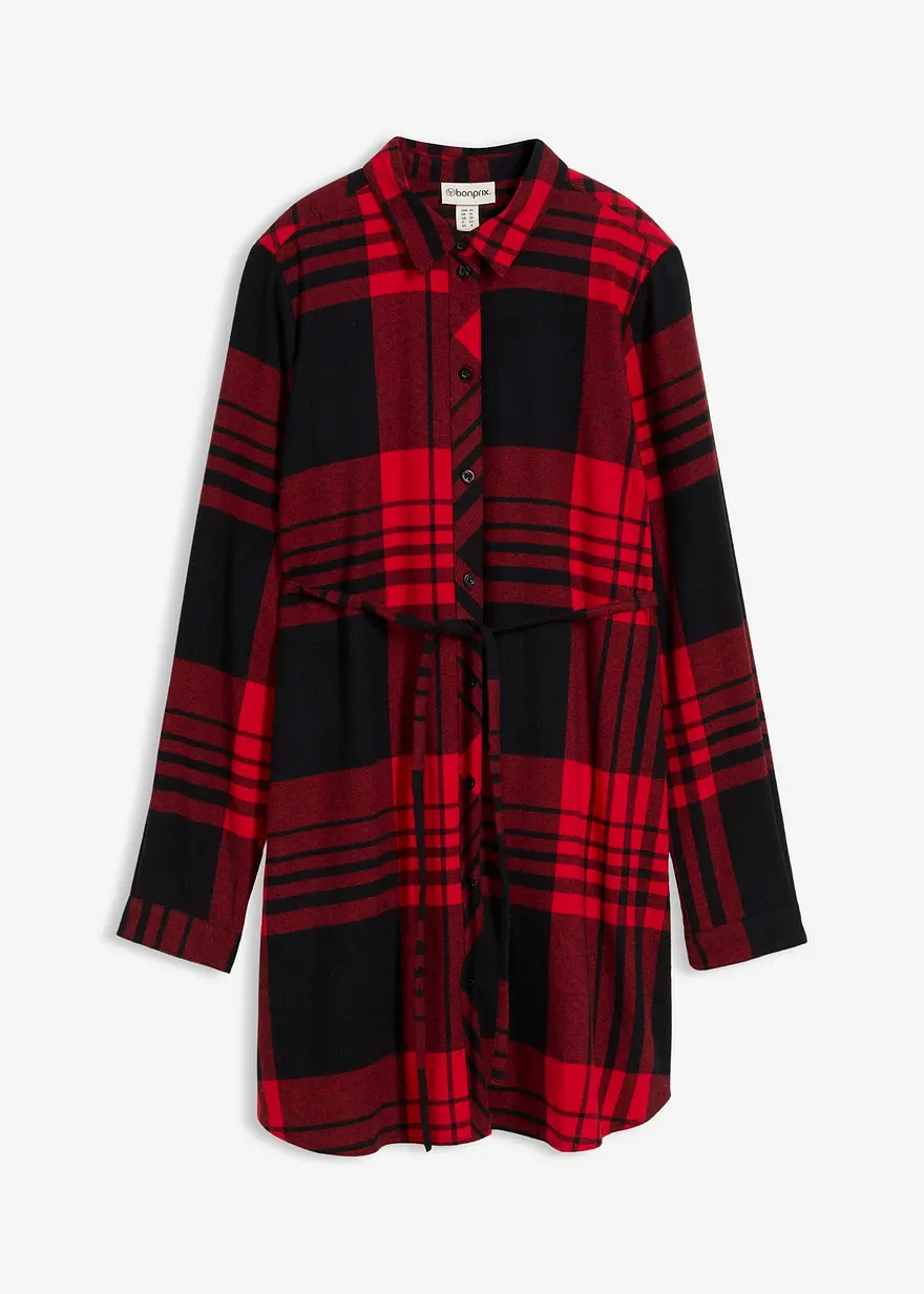 Lange Umstandsbluse aus weichem Baumwoll-Flanell in rot von vorne - bonprix