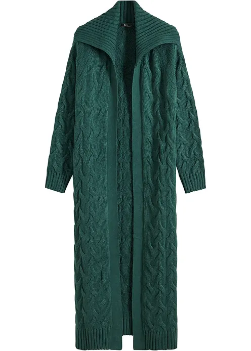 Langer Strickmantel aus Zopfstrick