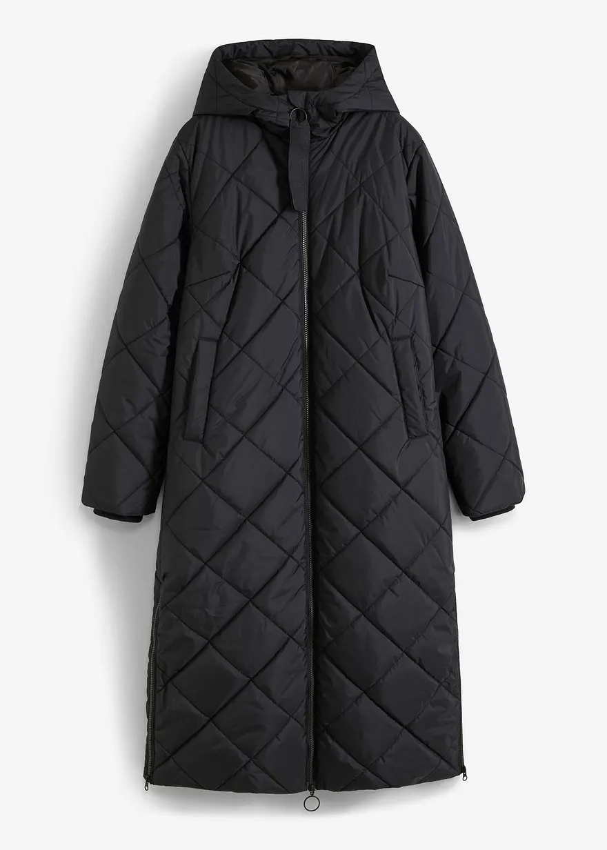 Langer, wattierter Steppmantel mit Kapuze