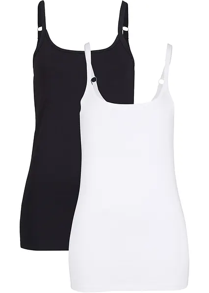Spaghetti-Top mit langem Schnitt aus Baumwolle, 2-er-Pack