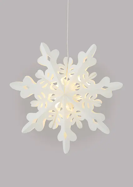 Entdecke zauberhaftes Leuchten: Der LED Papierhänger als Flocke in Weiß – sorgt für stimmungsvolle Momente. Das Praktische: die Flocke ist faltbar und kann nach den Feiertagen platzsparend gelagert werden, mit 2xCR2032 Batterien (enthalten)