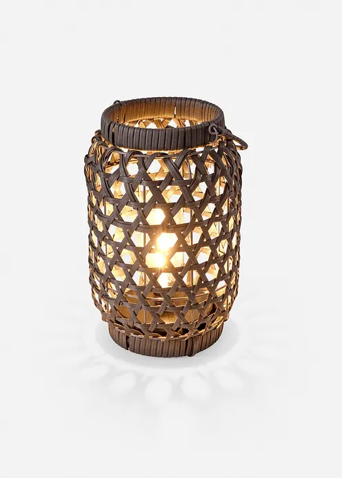 Diese kunstvoll geflochtene Laterne aus robustem Material bringt eine moderne und gleichzeitig natürliche Ästhetik in jeden Raum. Die offene Struktur ermöglicht eine sanfte Lichtverteilung und schafft eine einladende Atmosphäre, während das zeitgemäße Design stilvolle Akzente setzt. Ob im Garten, auf der Terrasse oder im Innenbereich, diese Laterne ist perfekt für entspannte Abende oder festliche Anlässe. Mit einem praktischen Tragegriff ausgestattet, lässt sie sich mühelos an verschiedenen Orten verwenden. Ein zeitloses Dekorationselement, das sowohl Funktionalität als auch kreativen Ausdruck vereint und jedem Ambiente eine besondere Note verleiht.