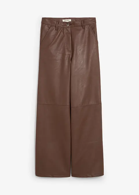 Ausgestellte Lederimitat-Hose mit farblich passenden Steppnähten auf Kniehöhe