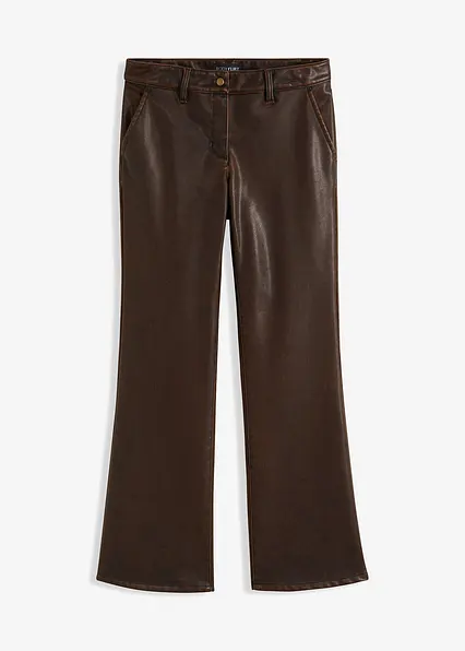 Modische Lederimitat-Hose mit geradem weitem Bein.