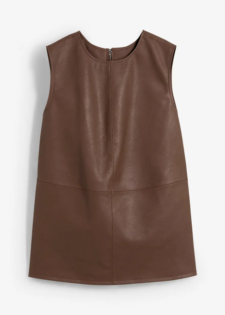 Ärmelloses Lederimitat-Top mit farblich passenden Teilungsnähten, Seitenschlitze am Saum sowie einem freiliegendem Reißverschluss hinten