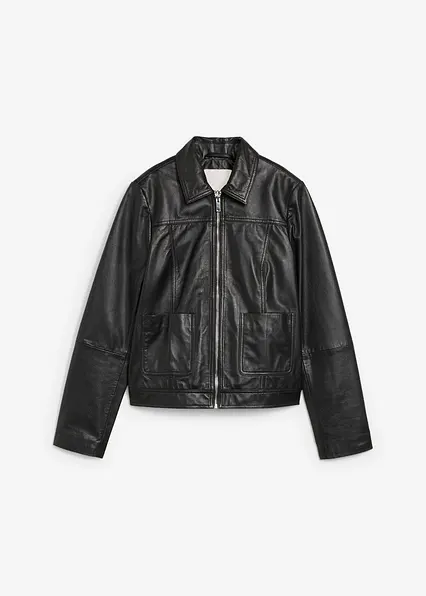 gerade geschnittene Lederjacke aus hochwertigem Lammnappa