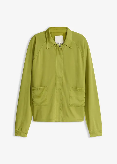 Leichte Blusenjacke aus Punto di Roma mit Satinbesatz