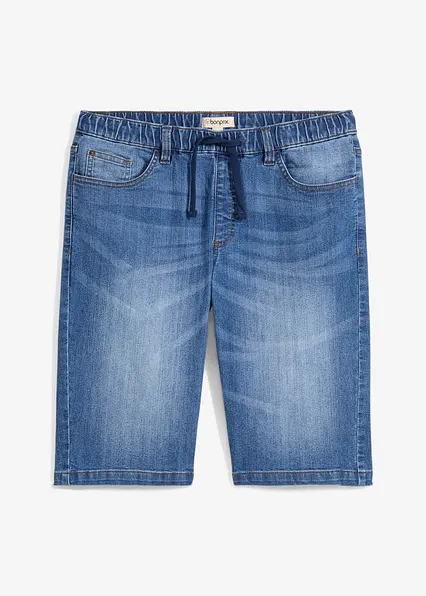 Bequeme Schlupf-Sweat-Jeansbermuda mit Rundum-Gummizug und leichter Waschung