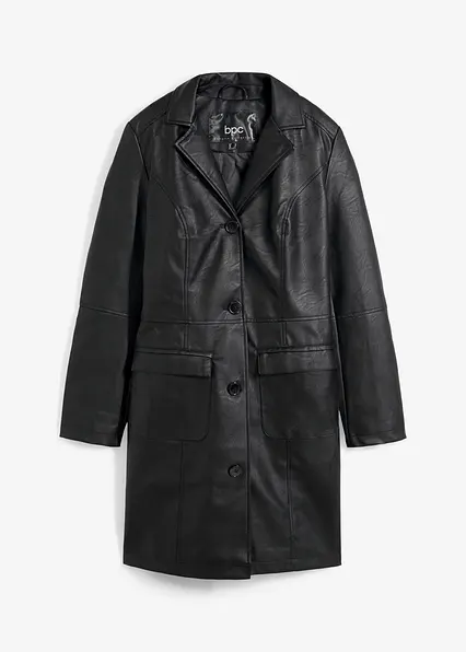 Leichter Lederimitat-Mantel mit Revers, tailliert