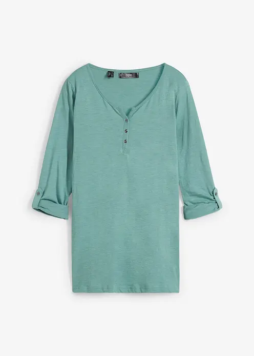 Leichtes Shirt mit dekorativem V-Ausschnitt und verstellbaren Ärmeln