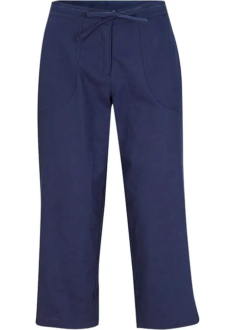 Komfortable 3/4-Leinenhose mit Bindeband und Taschen