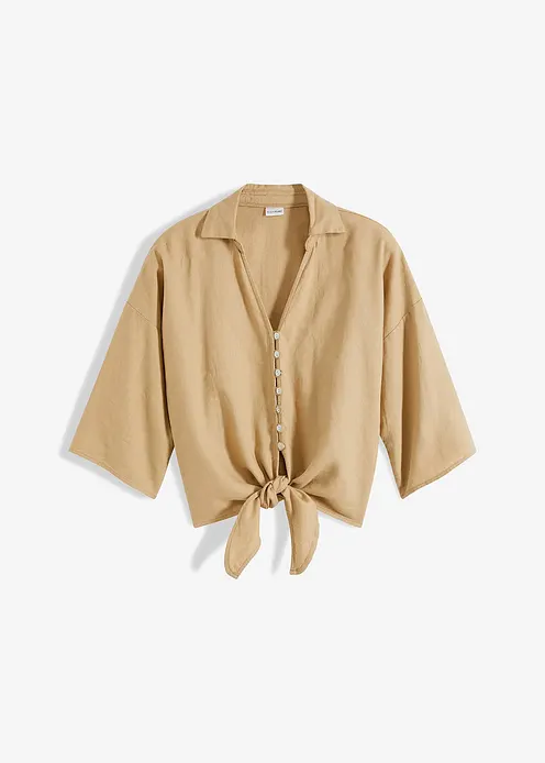 modische Leinen-Bluse mit Knoten-Detail vorne am Saum