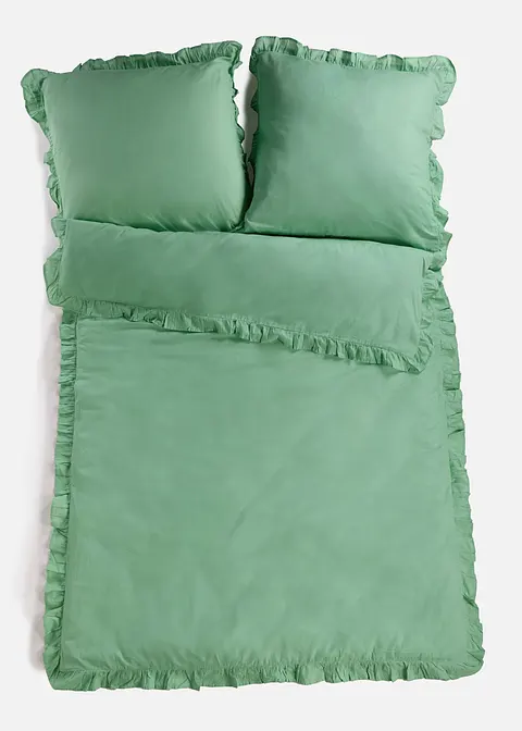 Bettwäsche mit Rüschen - sowohl am Kissen als auch an der Decke.