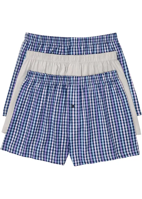 Das Mehrpack lockerer Jersey Boxershorts besteht 2 karierten und einer einfarbigen Boxershorts.