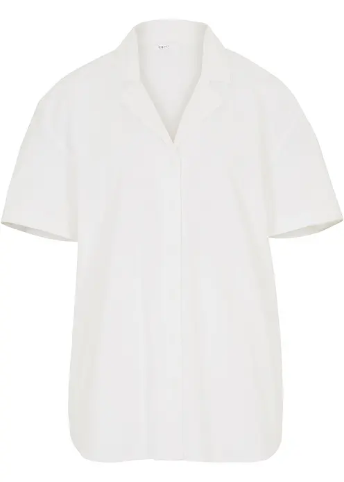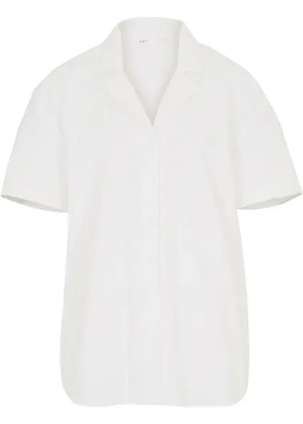 Lockere Oversize-Bluse aus leichtem Leinen-Mix in weiß von vorne - bonprix