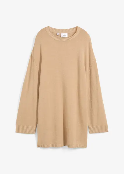Längerer Feinstrickpullover mit modischen Seitenschlitzen