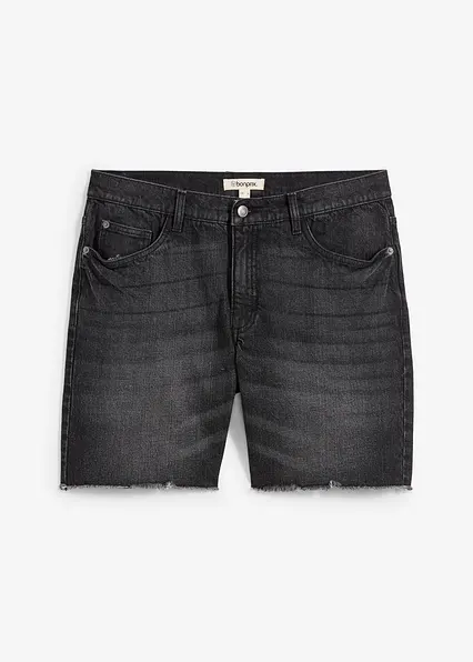 Stretch-Jeans-Shorts mit offenen Saumkanten, Relaxed Fit