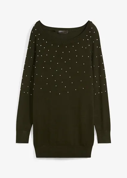 schöner Rundhals-Pullover mit Steinchenverzierung