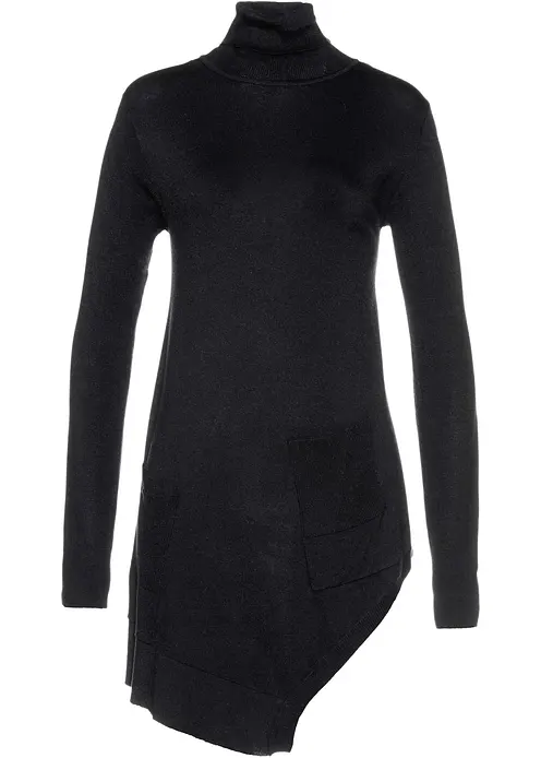 Long-Pullover mit asymmetrischem Saum aus softer Viskose-Mischung