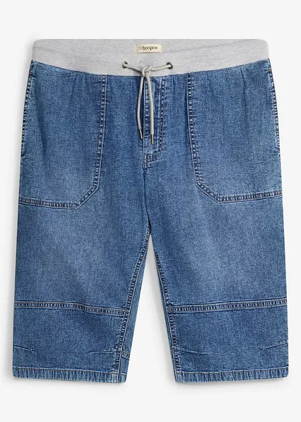 Leichte Long Schlupf-Jeans-Bermuda mit Dehnbund, Relaxed Fit