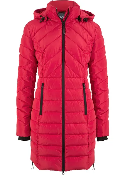 Diese Steppjacke mit kurzem Kragen überzeugt mit beidem: hohem Tragekomfort und einem legeren Aussehen. Das Modell von bpc präsentiert sich in angenehmer Länge mit einer abnehmbaren Kapuze und einem Tunnelzug. Mithilfe der seitlichen Reißverschlüsse lässt sich die Jacke an der Hüfte erweitern. Farblich abgesetzte Ärmelenden mit Rippbündchen unterstreichen das lässige Aussehen. Zu schließen ist die bequeme Long-Steppjacke mit Wattierung mit einem 2-Wege-Reißverschluss.