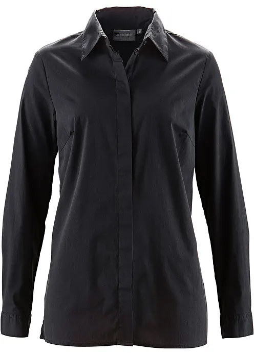 Zeitlose Long-Stretchbluse mit verdeckter Knopfleiste