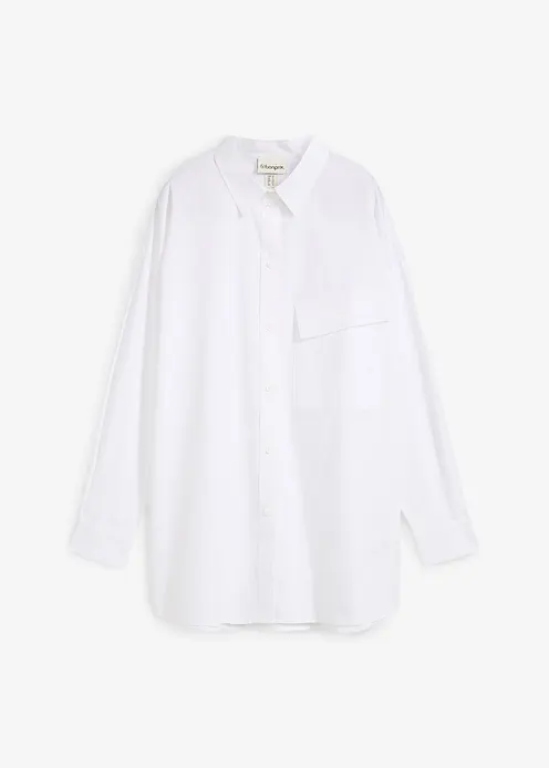 Lange Bluse mit schräger Brusttasche aus reiner Baumwolle