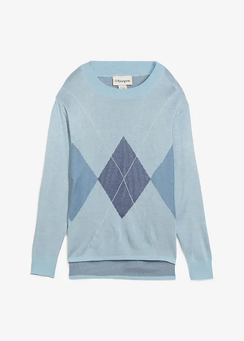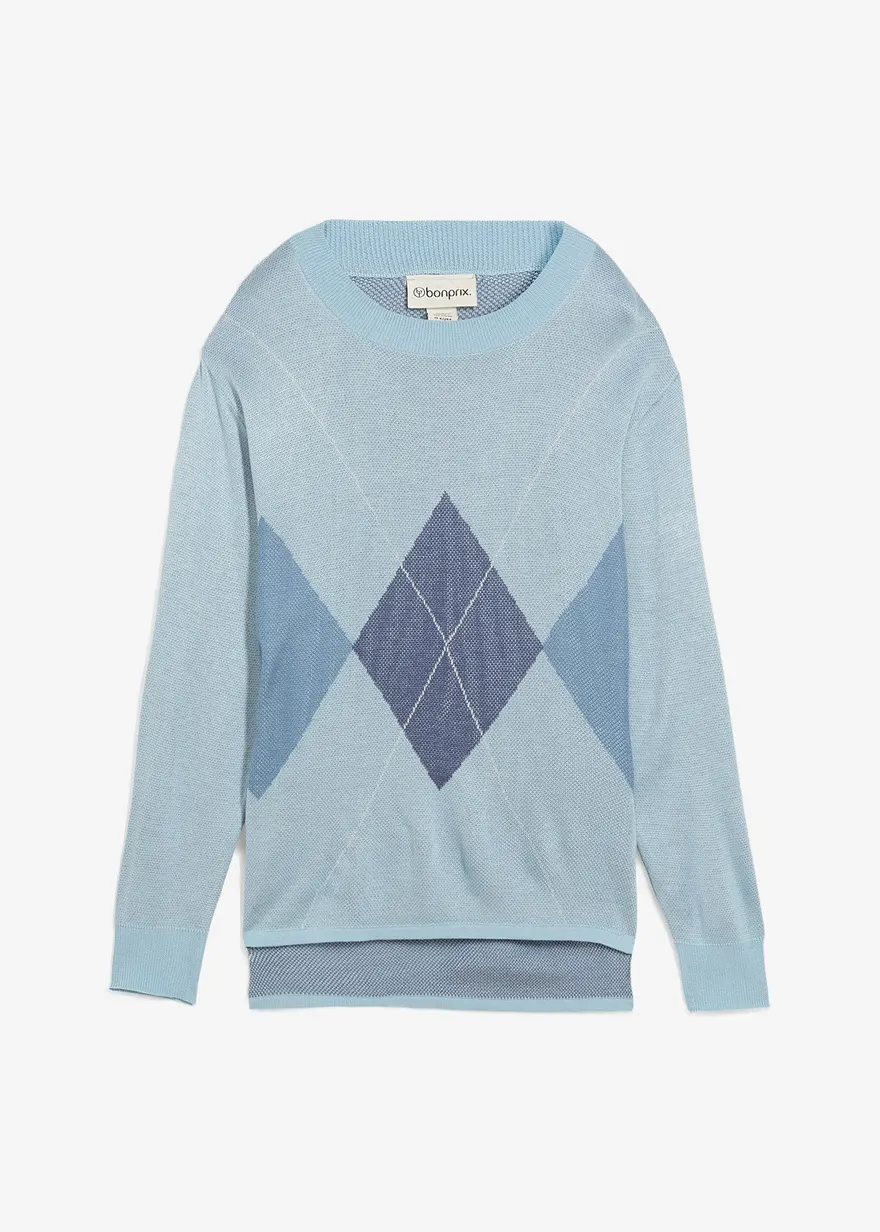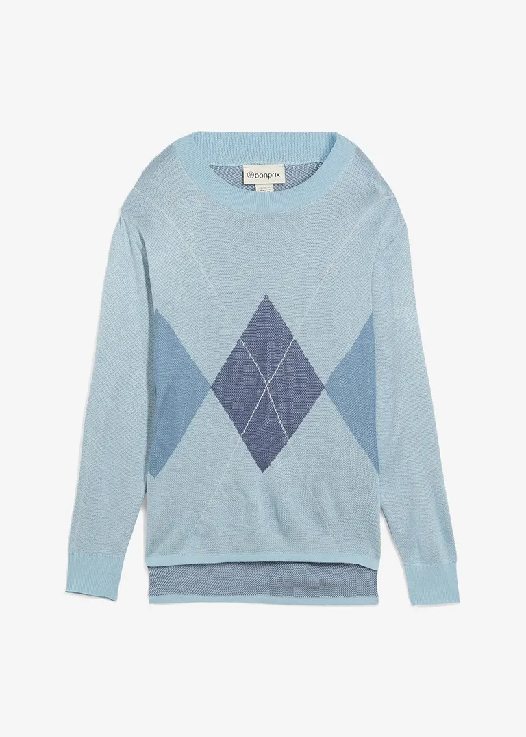 Longpullover mit überschnittener Schulter und verlängertem Rückensaum. Weite Passform.