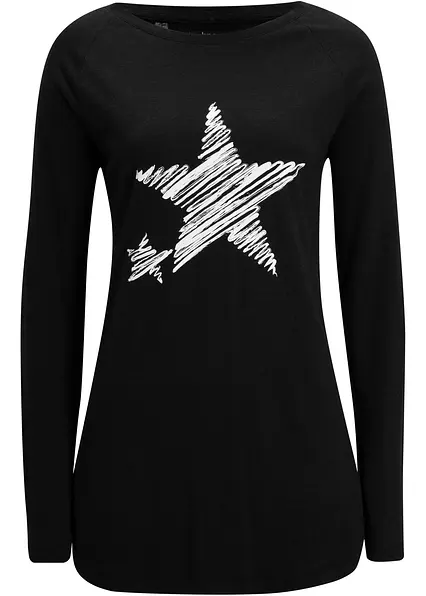 Bequem geschnittenes Longshirt mit Raglanärmeln und modernem Druck