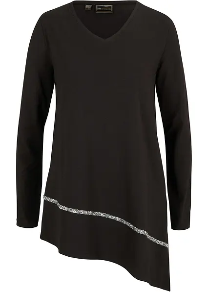 Longshirt mit asymmetrischen Schnitt und Glitzer