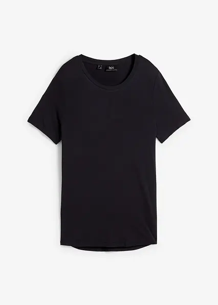 Modisches Longshirt, gerundeter Saum und Rundhalsausschnitt.