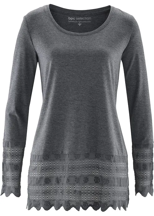 Longshirt mit Spitze in grau von vorne - bpc selection