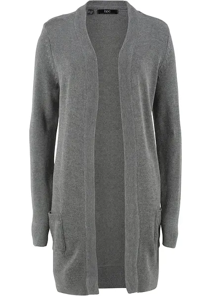 Dieses schöne Modell begleitet in vielfältigen Kombinationen durch die kühleren Tage des Jahres. Kuschelig weicher Strick sorgt für Wärme und ein Gefühl von Gemütlichkeit. Zwei aufgesetzte Taschen vorne unterstreichen dezent die legere Erscheinung der langärmligen Jacke.Die Long-Strickjacke von bpc ist offen zu tragen und schmeichelt mit ihrer komfortablen Passform der weiblichen Silhouette.