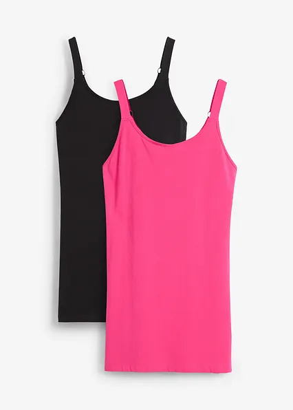Basic-Longtop mit breiten verstellbaren Trägern aus Baumwolle im 2er Pack