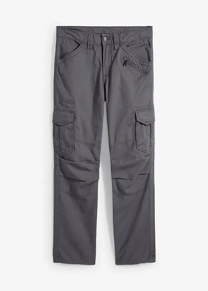 Relaxed Fit Cargohose aus reiner Baumwolle, Straight in grau im Look von vorne (Totalaufnahme) - bonprix